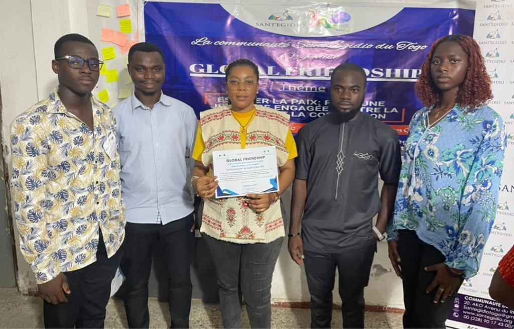 Du 9 au 11 octobre 2025, dix membres de notre Groupe Local Action Urgente ont eu l’honneur de participer au Forum national des jeunes pour la paix, Global Friendship Togo 2025, une initiative organisée par la Communauté de Sant’Egidio Togo sous le thème : espérer la paix pour une jeunesse contre la violence et la corruption.